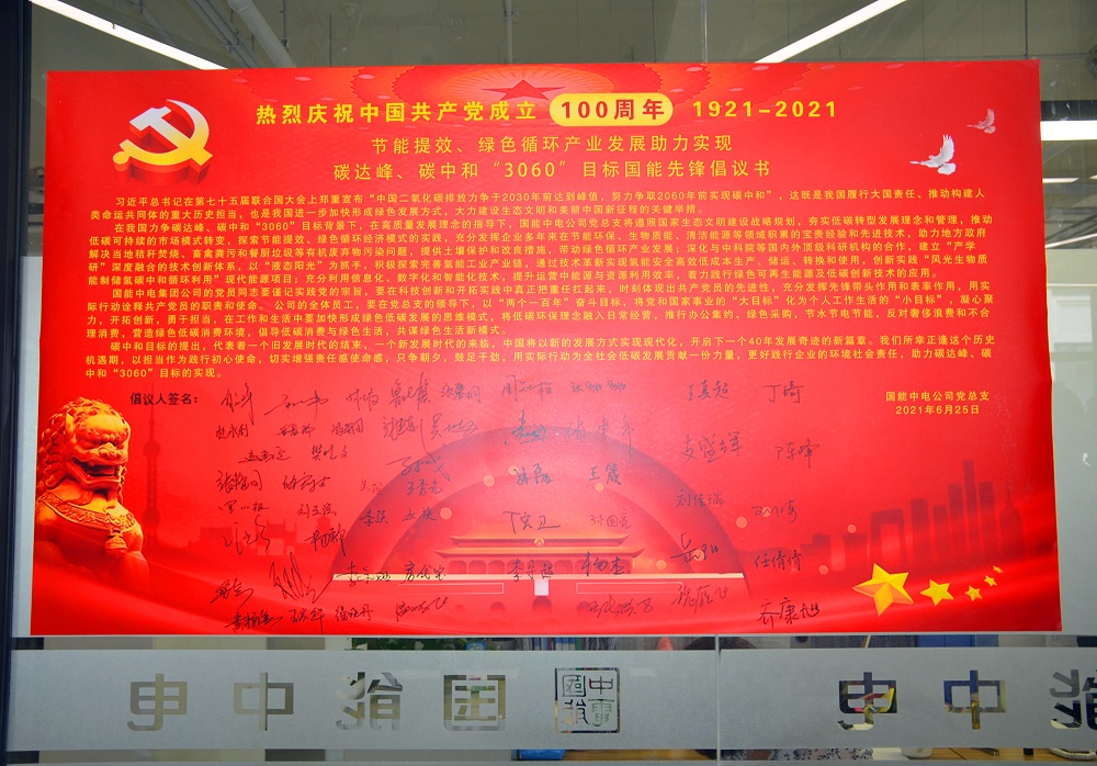 作為能源環(huán)保領(lǐng)域有知名影響力和行業(yè)引領(lǐng)性的企業(yè),國能中電積極踐行國家“碳中和”生態(tài)戰(zhàn)略,近年來大力發(fā)展生物質(zhì)能、風(fēng)光生物質(zhì)制儲氫一體化等清潔能源項(xiàng)目,助力國家“3060” 目標(biāo)的實(shí)現(xiàn)。在建黨100周年的良好時機(jī),國能中電黨總支發(fā)起了黨員社會責(zé)任倡議,號召全體黨員及廣大員工以碳達(dá)峰、碳中和“3060”目標(biāo)為指引,夯實(shí)低碳轉(zhuǎn)型發(fā)展理念,推動綠色循環(huán)經(jīng)濟(jì)模式創(chuàng)新實(shí)踐,發(fā)揮企業(yè)多年來在節(jié)能環(huán)保、生物質(zhì)能、清潔能源等領(lǐng)域積淀的寶貴經(jīng)驗(yàn)和先進(jìn)技術(shù),踐行企業(yè)社會責(zé)任,推動綠色產(chǎn)業(yè)發(fā)展,助力碳達(dá)峰、碳中和“3060”目標(biāo)的實(shí)現(xiàn)。