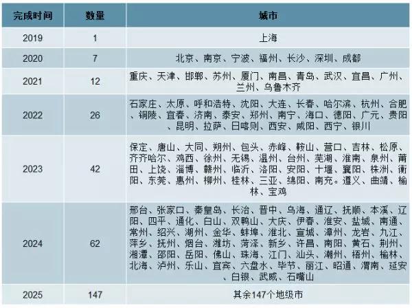 各地級城市垃圾分類推廣節奏逐步釋放。我們依據各城市已推行的垃圾分類政策及各城市生活垃圾清運量及處置規模等屬性推測垃圾分類政策推行進度。考慮到政策實際推行情況,保守假設垃圾分類年化市場釋放節奏為:2019年上海;2020年北京/南京/成都/深圳等7個重點城市;2021年重慶/天津/蘇州等12個重點城市;2022年46個重點城市中剩余的26個重點城市;2023年保定/大同/吉林等42個地級市;2024年邢臺/淮安/九江等62個地級市;2025年剩余的地級市。在空間測算中均以該推廣節奏為前提進行測算。